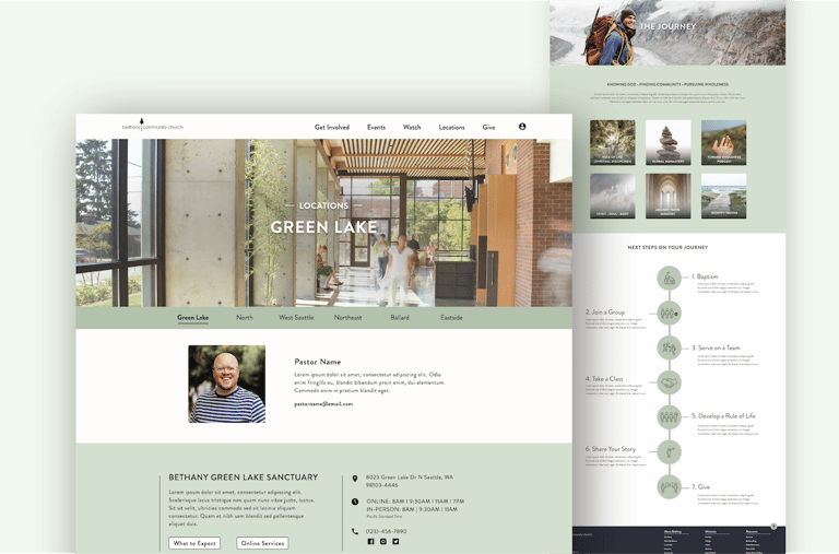Revamping Bethany Community Church's website for a unified experience, bridging the gap between multiple locations for current and new attendees.