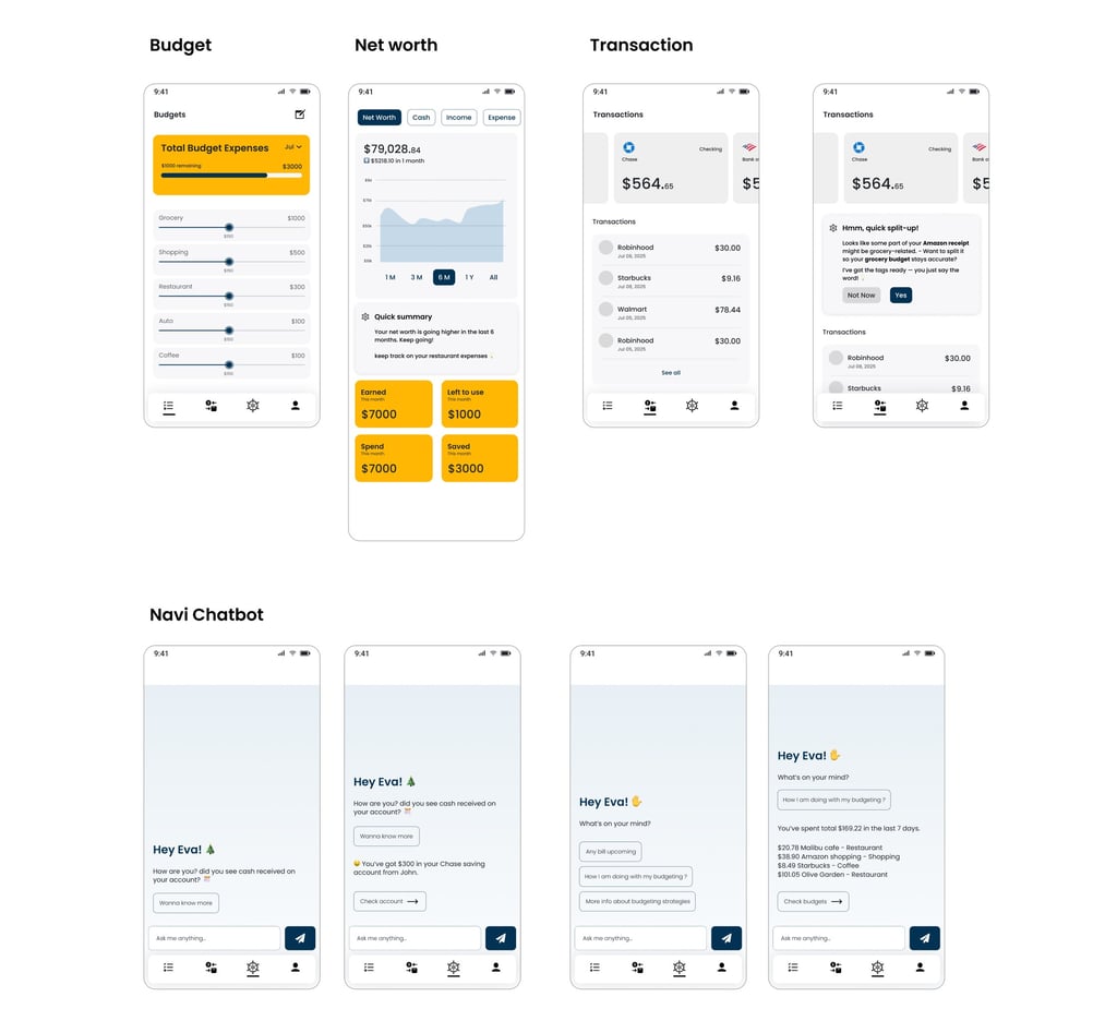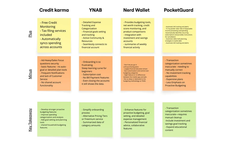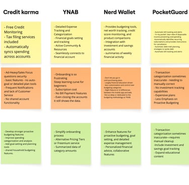 I dove deep into Mobbin's extensive library of real-world app screens and user flows to research on YNAB, Credit Karma, and PocketGurd, Nerd Wallet. Also, I got more detailed insights from Gemini and ChatGPT.
